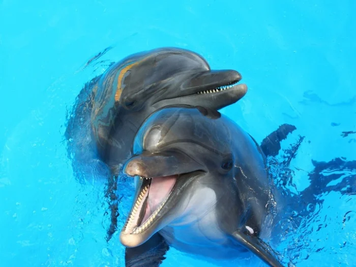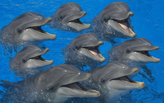 При этом дельфины быстро обмениваются информацией между собой. И если почувствуют опасность – мгновенно предупредят друг друга и соберутся в стаю.