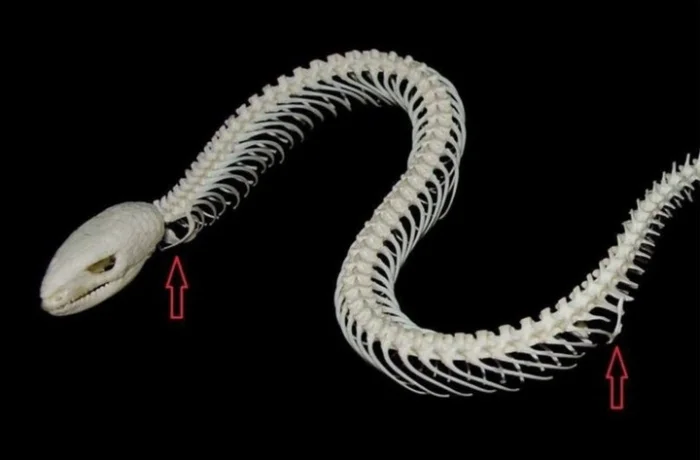 Интересно, что на скелете безногой ящерицы четко видны кости рудиментарных конечностей.