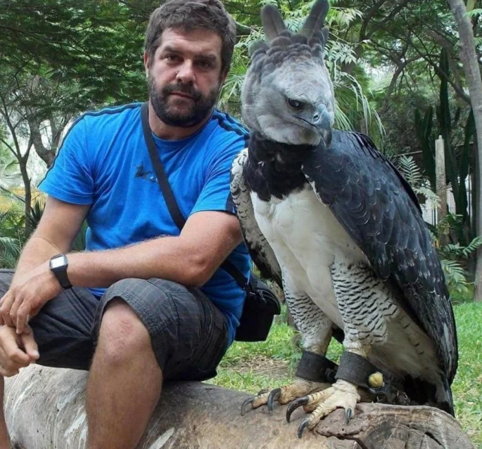 Гарпия из Южной Америки впечатляет своими размерами в сравнении с человеком