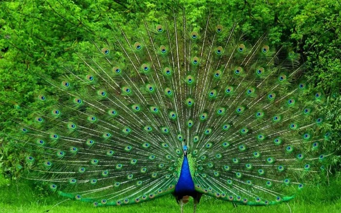Только самцы-павлины носят этот роскошный «веер» длиной до полутора метров. Красота необходима им, чтобы очаровывать самок, отпугивать соперников и отвлекать хищников. Каждое перо ещё и украшено «глазом», который мерцает на солнце. Павлины издают инфразвук при помощи раскрытого хвоста, который чувствуют соплеменники.