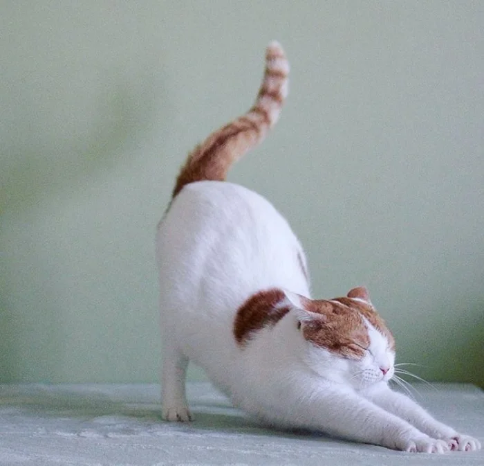 Когда кошка потягивается, это не просто обычная разминка, а настоящая поэзия движений, демонстрирующая изящество и пластику. От грациозного вытягивания лапок до акробатического изгиба спины — эти фотографии подтверждают, что кошки превратили потягивание в настоящее искусство.