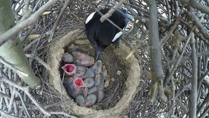 Сорочье гнездо - это не просто уютный уголок на дереве, а настоящий форт с узким лазом и фальшивыми гнездами.