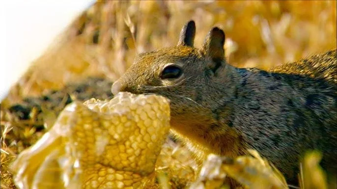 Летом калифорнийский суслик превращается в настоящего хищника. Он — один из немногих грызунов, который целенаправленно охотится на других грызунов. Даже ученые были поражены! Основной добычей становятся местные полевки, чья популяция достигает пика в середине лета. Именно в это время суслики проявляют свою кровожадную натуру. Они не только охотятся, но и отбирают добычу друг у друга!