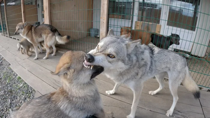 Почему собаки и волки кусают друг друга за морду — и что это значит