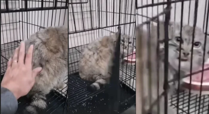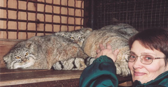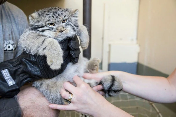 Обратите внимание на толщину перчаток у человека, держащего подросшего манулёнка.