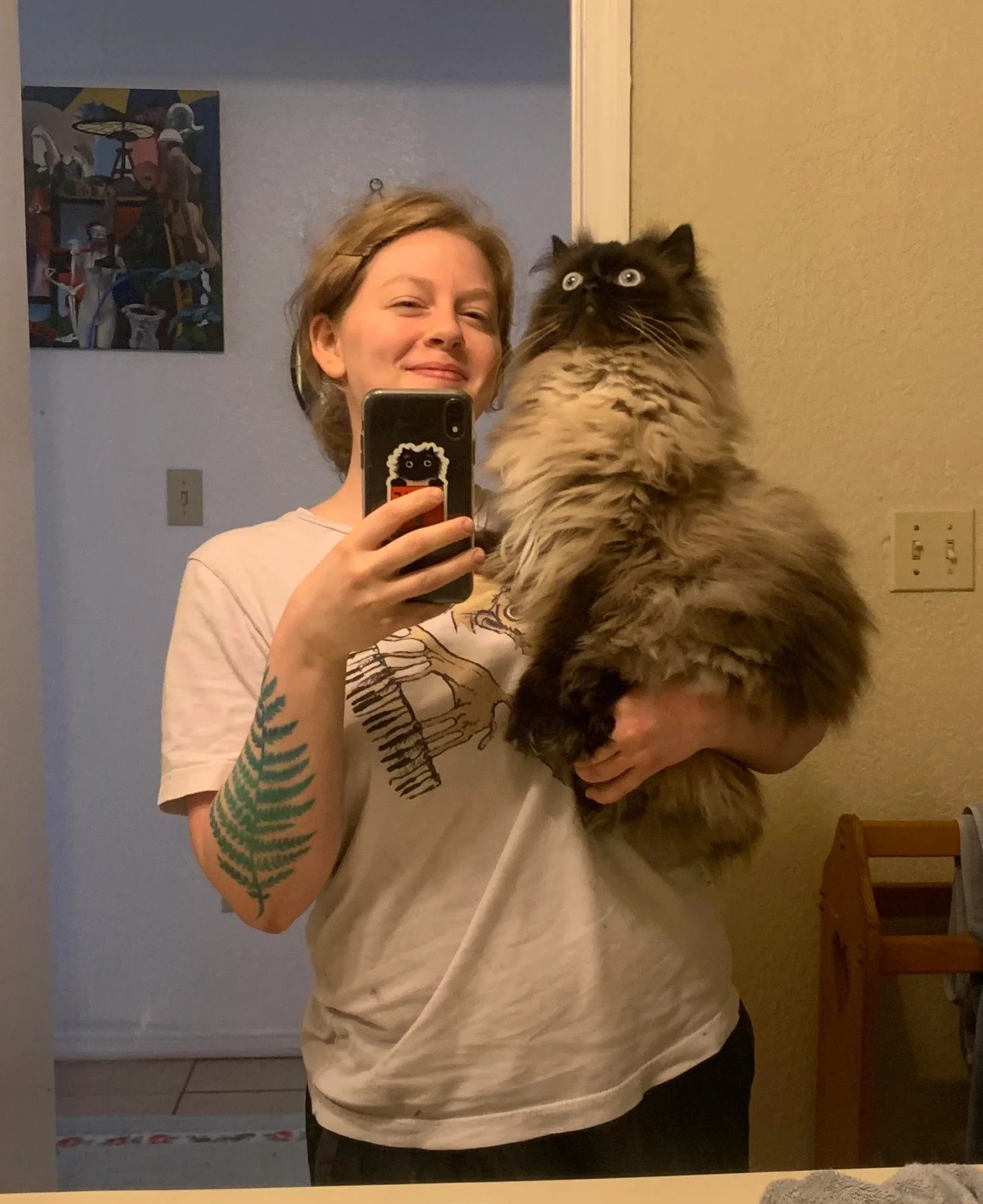 Кот в сравнении с девушкой ростом 165 сантиметров
