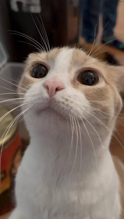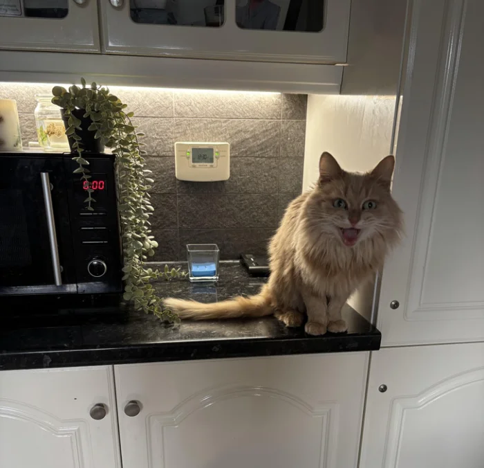 «Для нее существует, по сути, два правила: не забираться на кухонные поверхности и не выпрашивать еду. На этой фотографии она нарушает сразу оба»