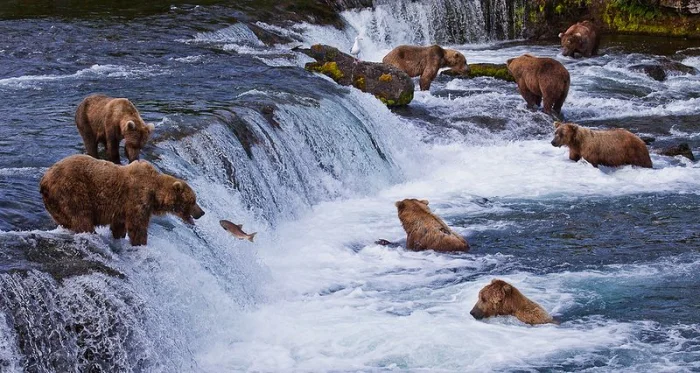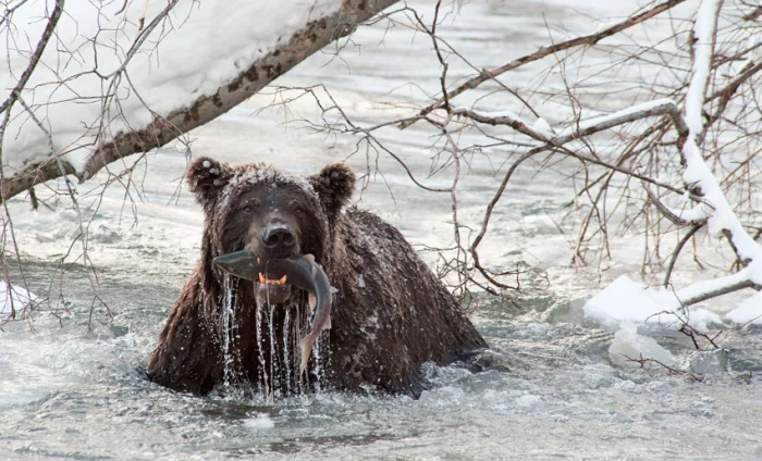 Аналогичная ситуация наблюдается на Аляске и острове Кадьяк, где рыбу буквально можно собирать с земли. Местные медведи настолько отъедаются, что кадьякские медведи признаны самыми крупными представителями бурого медведя на планете! Их средние размеры превышают габариты российских сородичей примерно в полтора раза!