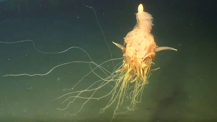 Знакомьтесь – это батифиза шишковатая. В сети её прозвали «макаронным чудовищем». Причина такого названия становится очевидной, стоит лишь взглянуть на изображение.