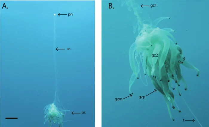 Подобно другим живым существам, батифиза начинает свою жизнь с единственной оплодотворённой клетки, называемой зиготой. Спустя одну-две недели зигота превращается в личинку, которая свободно плавает в водной толще. Некоторое время личинка перемещается по течению, накапливая силы, после чего происходит настоящее биологическое чудо. Личинка создаёт точную копию себя, а затем ещё одну, и ещё... Да, подобный способ размножения известен у некоторых кишечнополостных, например, гидр, которых изучают в школьной программе. Однако в случае с батифизой процесс отличается. У гидры клоны отделяются и начинают самостоятельную жизнь, а у макаронного монстра все клоны-зооиды остаются вместе. Более того, каждый клон сразу после рождения получает свою уникальную «специализацию».