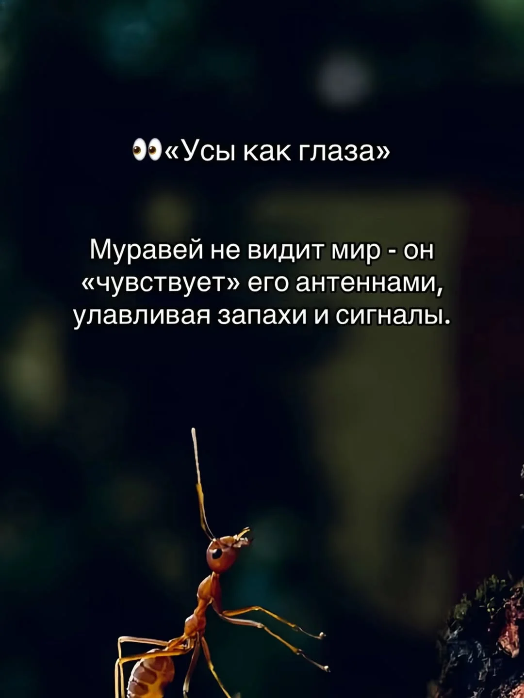 Восприятие мира у муравьёв тоже сильно отличается от нашего. Их зрение развито слабо, зато антенны выполняют роль универсальных органов чувств. С их помощью муравьи «считывают» запахи, вибрации и химические сигналы. Феромоны заменяют им язык: так они передают тревогу, находят дорогу к пище и узнают своих. Для муравья мир — это не картинка, а сложная карта запахов и сигналов.