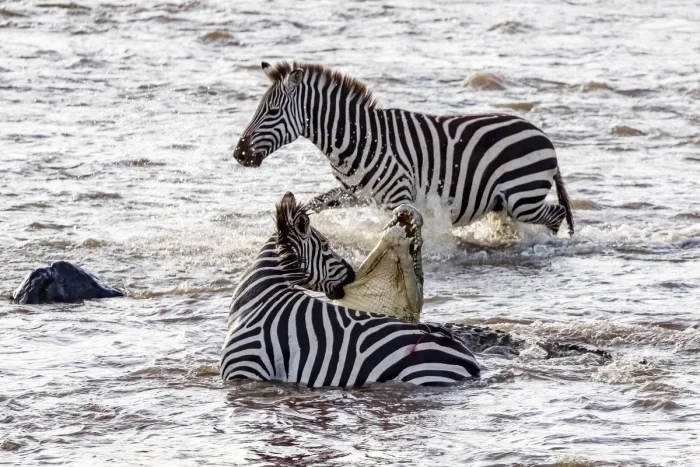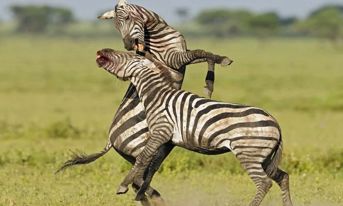Всё вроде бы мирно, но откуда тогда драки и смертельные раны? Дело в том, что половозрелые самцы всех видов зебр жестко сражаются за право владеть гаремом самок. Они бьют друг друга копытами, ломают кости, кусают, оставляя глубокие рваные раны, и пытаются сбить соперника с ног. После схватки победитель становится новым «главным самцом», а проигравший, ослабленный и избитый, рискует стать добычей львов.