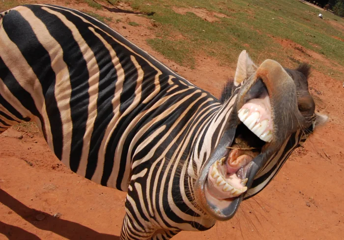 Просто милые полосатые лошадки? Ага, как бы не так! Присмотритесь повнимательнее — это не природный камуфляж, а настоящая тюремная полосатая униформа! Зебры — одни из самых агрессивных представителей семейства лошадиных. В их стадах постоянно происходят акты насилия: между собой, по отношению к детёнышам и даже к хищникам. Иногда их нервная система не выдерживает давления, и зебры погибают — не от зубов льва, а от собственного стресса.