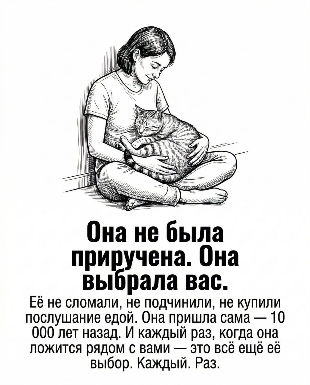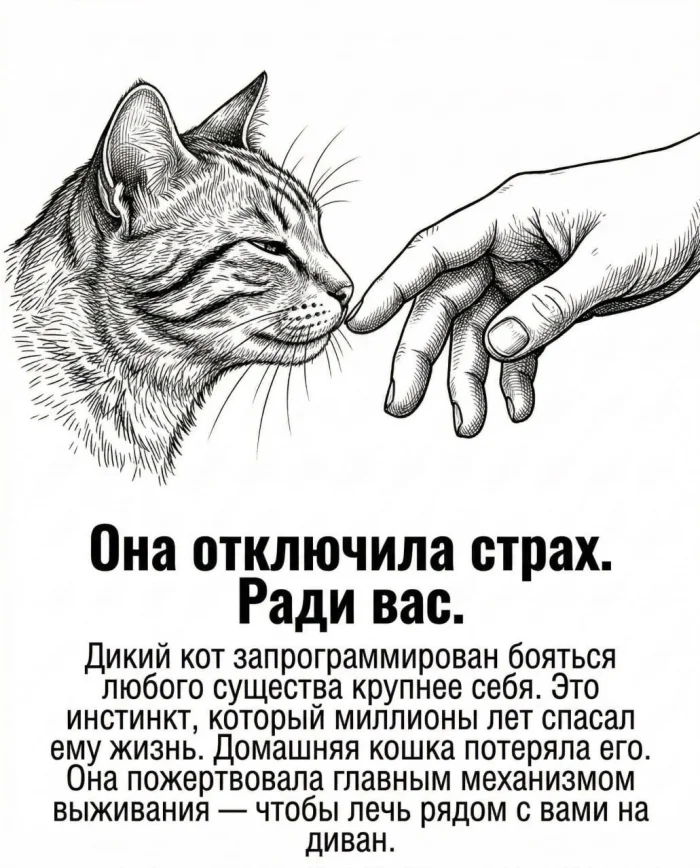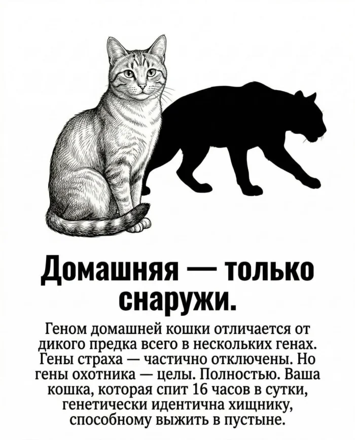 Поэтому, когда ваша кошка спокойно спит рядом с вами, помните: это не просто питомец. Это дикий хищник, который когда-то выбрал вас — и продолжает делать этот выбор каждый день.