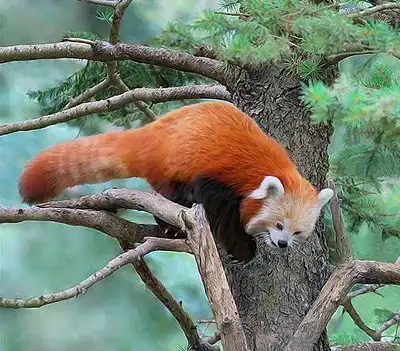 Kрасная панда (лат. Ailurus fulgens — «кошка, окрашенная как огонь», также известная как малая панда, «кошка-медведь», «огненная кошка») — животное семейства енотовых(?), в основном травоядное, размером с кошку.