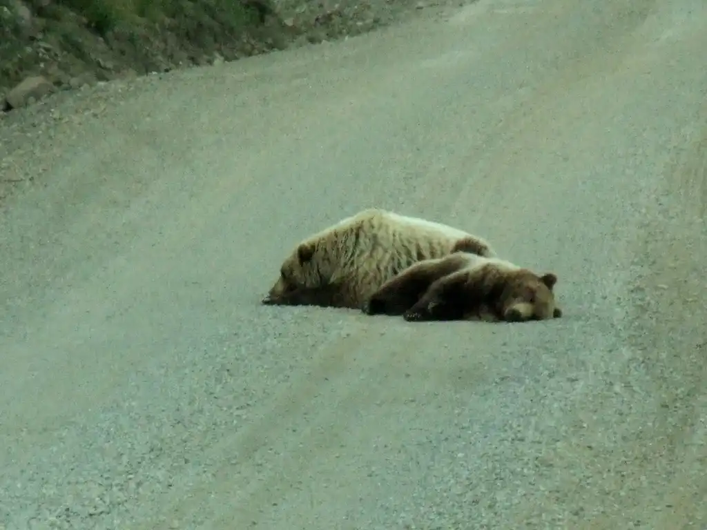 Гризли спят на дороге