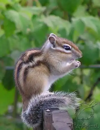 Обычным видом на востоке США и юго-востоке Канады является восточноамериканский бурундук (Tamias striatus). Размеры его тела — 14—19 см, хвоста — 8—11 см, масса 70—140 г. Спина красновато-коричневая с пятью укороченными белыми полосками, окаймлёнными тёмным мехом. Хвост рыжевато-коричневый. Обитает восточноамериканский бурундук в лиственных лесах, зарослях кустарника, среди скал и каменистых россыпей. По образу жизни сходен с сибирским бурундуком.