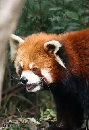 «Кошка, окрашенная как огонь» или малая панда, так же известная как "кошка-медведь" , "огненная кошка". Животное семейства енотовых, в основном травоядное, размером немного крупнее кошки. Ареал обитания в основном Китай. Включена в Красную Книгу со статусом «Подвергающийся опасности»