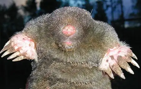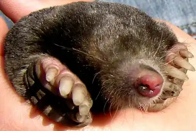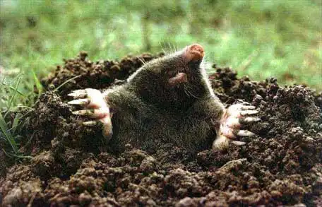 Две очень большие передние лапы-лопаты предназначены для рытья земли. А также нос, весьма чувствительный к запахам, предназначен для грубой работы, - носом крот землю буравит, лапами гребет, как экскаватор и толкает назад. Скорость проходки - 30 см. в минуту.