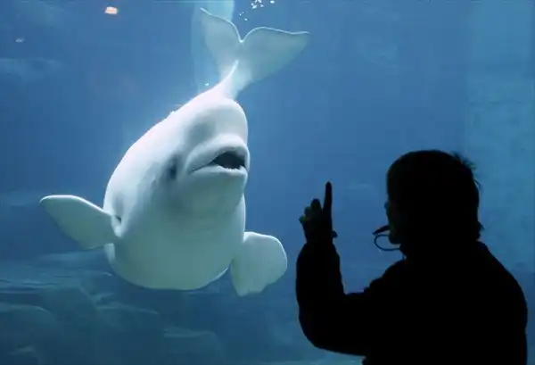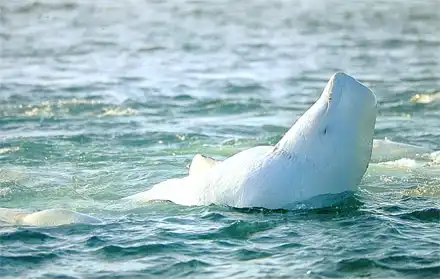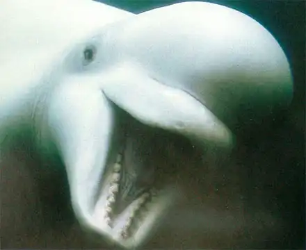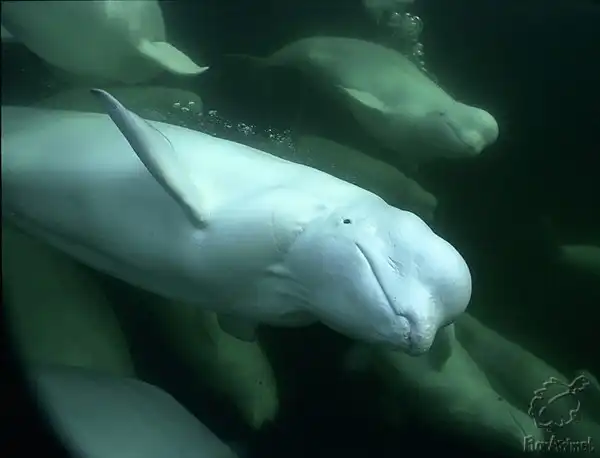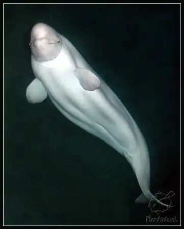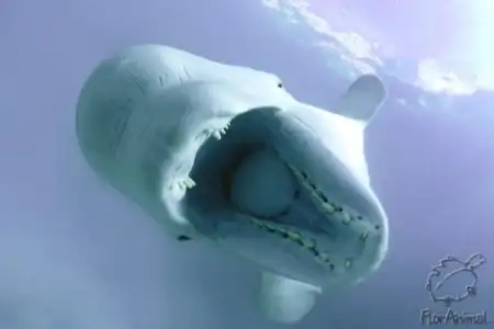 БЕЛУХА(Delphinapterus leucas) единственный представитель рода. Крупнейшие самцы белухи достигают 6 м длины и 2 т массы, а самки —5 и 1,5 т. На небольшой округлой голове клюв не выражен. Спинного плавника нет, а грудные плавники маленькие, овальной формы. Окраска тела однотонная: у взрослых — белая или желтая, у сосунков — аспидно-синяя, у молодых (закончивших молочное питание и достигших половой зрелости) — серая и голубая. Зубов по 8—10 пар вверху и внизу; верхние сильно наклонены вперед, а нижние в в передней части ряда направлены вперед, средние — вверх и задние — чуть назад. Белуха распространена во всех морях Арктики и в прилегающих бассейнах — Беринговом и Охотском морях. В очень суровые зимы спускается на юг до берегов Японии, Великобритании, штата Массачусетс, заходит даже в Балтику. В водах России существуют три подвида белух — беломорская, карская и дальневосточная. Летом белуха держится близ берегов, в открытом море, на чистой воде и среди льдов. Зимует, видимо, в незамерзающих полыньях, где ломает молодой лед своей спиной. В поисках пищи нередко заходит в реки, поднимаясь по ним на сотни километров от устья. Питается она разными видами стайных рыб, а также ракообразными и головоногими моллюсками. В Белом море поедает преимущественно трескообразных, камбалу, сельдь, мойву; в Карском море — сайку, навагу и сиговых; в дальневосточных морях — лососевых рыб, сельдь, навагу. Скорость передвижения у пасущихся белух лишь 1,5—2 км/ч, а у напуганных возрастает до 22 км/ч. При средней скорости они выныривают через каждые 1—1,5 минуты, но способны как максимум оставаться под водой до четверти часа. Обычно они держатся небольшими стайками (как предполагают, семьями), но на огромных скоплениях рыбы летом собираются иногда в многотысячные стада. Время размножения белухи — от весны до осени, но кульминация спаривания и родов приходится на середину либо конец лета. После 11—12-месячной беременности родится темно-синеватый детеныш около 150 см длины. Половая зрелость самок, судя по зубам и половым железам, наступает в 6 лет, при средней длине тела 275 см, а самцов — в 6—9 лет при длине 275—320 см. Поскольку некоторые самки спариваются, имея при себе еще очень молодых сосунков, они, видимо, могут рождать два года подряд (обычно — через два года). Белуха издает весьма разнообразные звуковые сигналы — свист, визг, глухие стоны, щебетание, клекот, скрежет, пронзительный крик, рев (отсюда и произошла пословица «ревет как белуга»). Она может издавать ультразвуки и с их помощью хорошо ориентироваться в окружающей среде. Успешны попытки содержать белуху в неволе. Сто лет назад один самец прожил в Бостонском аквариуме два года, проявил там большие способности к обучению и демонстрировал трюки перед зрителями. В настоящее время представлены в нескольких дельфинариях Москвы. Белух ловят специальным снаряжением — сетями и неводами близ берегов, на путях движения косяков — в Белом, Баренцевом, Карском и дальневосточных морях. Промысел ведут в водах Гренландии, Шпицбергена, в заливе Святого Лаврентия и у северных берегов Аляски. Белух ценят за прочную шкуру и высококачественный жир.