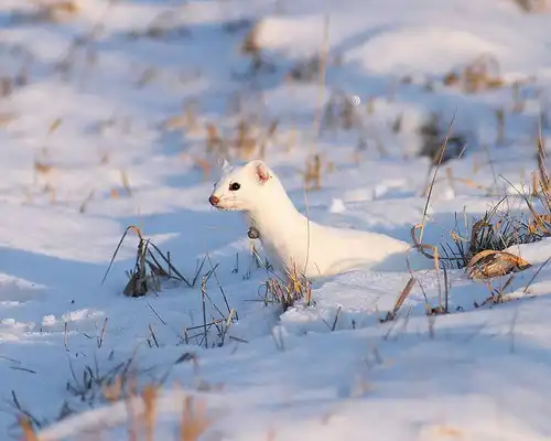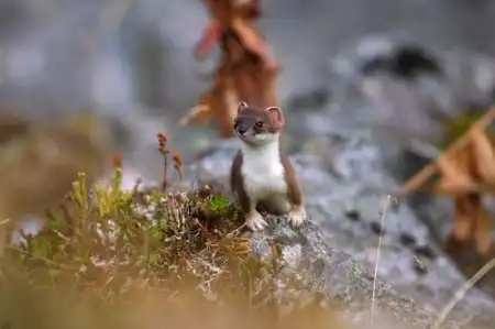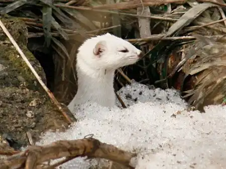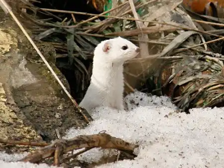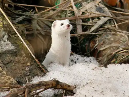 Образ жизниГорностай наиболее многочислен в лесостепных, таёжных и тундровых районах. Выбор им места обитания определяется обилием основного корма — мелких грызунов. Как правило, горностай предпочитает селиться неподалёку от воды: по берегам и поймам рек и ручьёв, у лесных озёр, по прибрежным лугам, зарослям кустарника и тростника. В глубину лесных массивов заходит редко; в лесах держится старых зарастающих гарей и вырубок, опушек (особенно неподалёку от селений и пашен); в густых лесах любит приручьевые ельники и ольшатники. Обычен в перелесках, по степным оврагам и балкам. Открытых пространств избегает. Иногда поселяется вблизи человеческого жилья, на полях, в садах и лесопарках, даже на окраинах городов.
