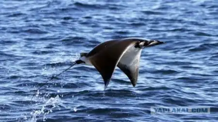 Скат Мобула - электрический родственник всем известных Морских дьяволов, который водится в Мексиканском заливе. Они выпрыгивают из воды на несколько метров, выделывая в воздухе немыслимые сальто и пируэты. При этом ученые не могут объяснить: зачем Мобуле нужны такие “полеты” над морем!?