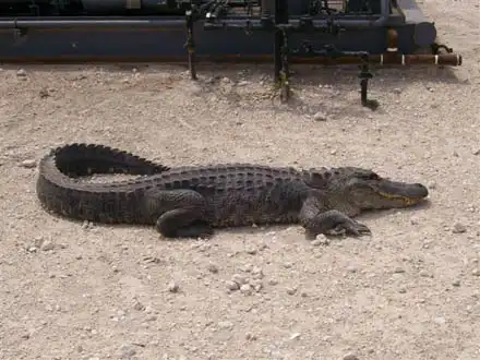 Крокодил решил спрятаться между труб поджидая добычу, но застрял, чем был очень раздосадован. Но местные рабочие решили помочь неудачливому охотнику и выпустили животное на волю.
