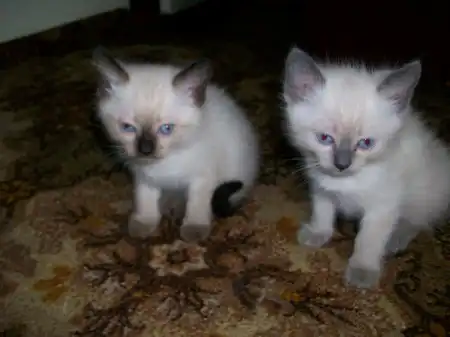 Голубоглазенькие и пушистенькие два котика и одна кошечка.