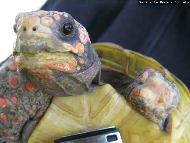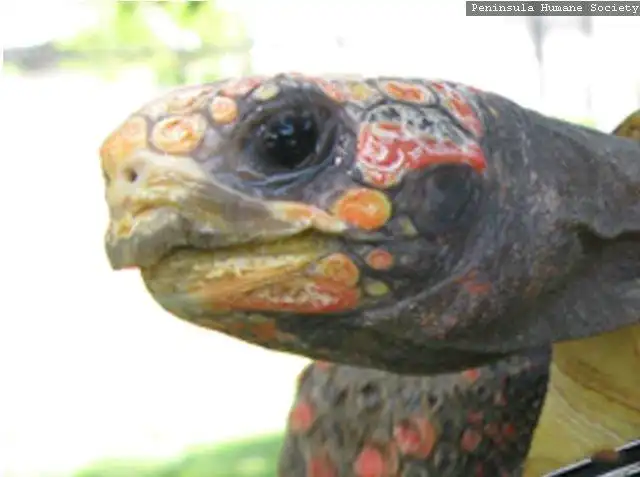 Эта несчастная черепаха попала под автомобиль и осталась без передней лапы.