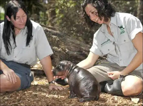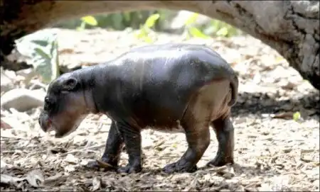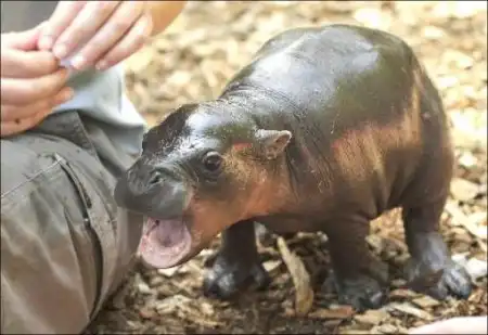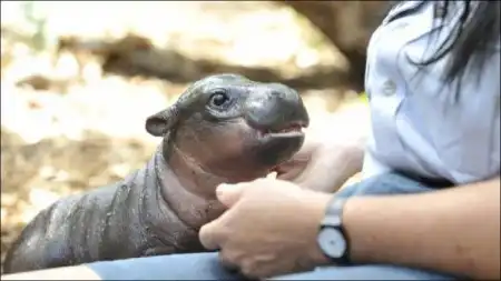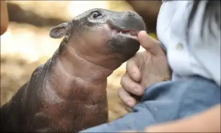 В одном из зоопарков Австралии готовятся показать публике нового питомца. Трeхнедельная самка карликового гиппопотама пока ещe боится видеокамеры, но уже самостоятельно ест и обожает принимать ванну. Малышка по имени Монифа быстро набирает вес и совсем скоро сможет предстать перед публикой. Смотрители не спускают с Монифы глаз: во всeм мире осталось не более трeх тысяч особей карликового гиппопотама.