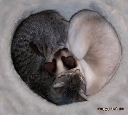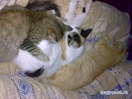 Несмотря на асимметричную природу, кошки и коты дружат (когда не дерутся). Десять минут носятся галопом, потом внезапно ложатся спать, превращаясь в красивый меховой коврик. При этом светлая кошка и темный кот могут качественно изобразить Инь и Ян.