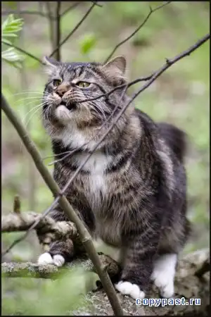 Результат: руки исцарапаны, кот бессмысленно таращится со шкафа.