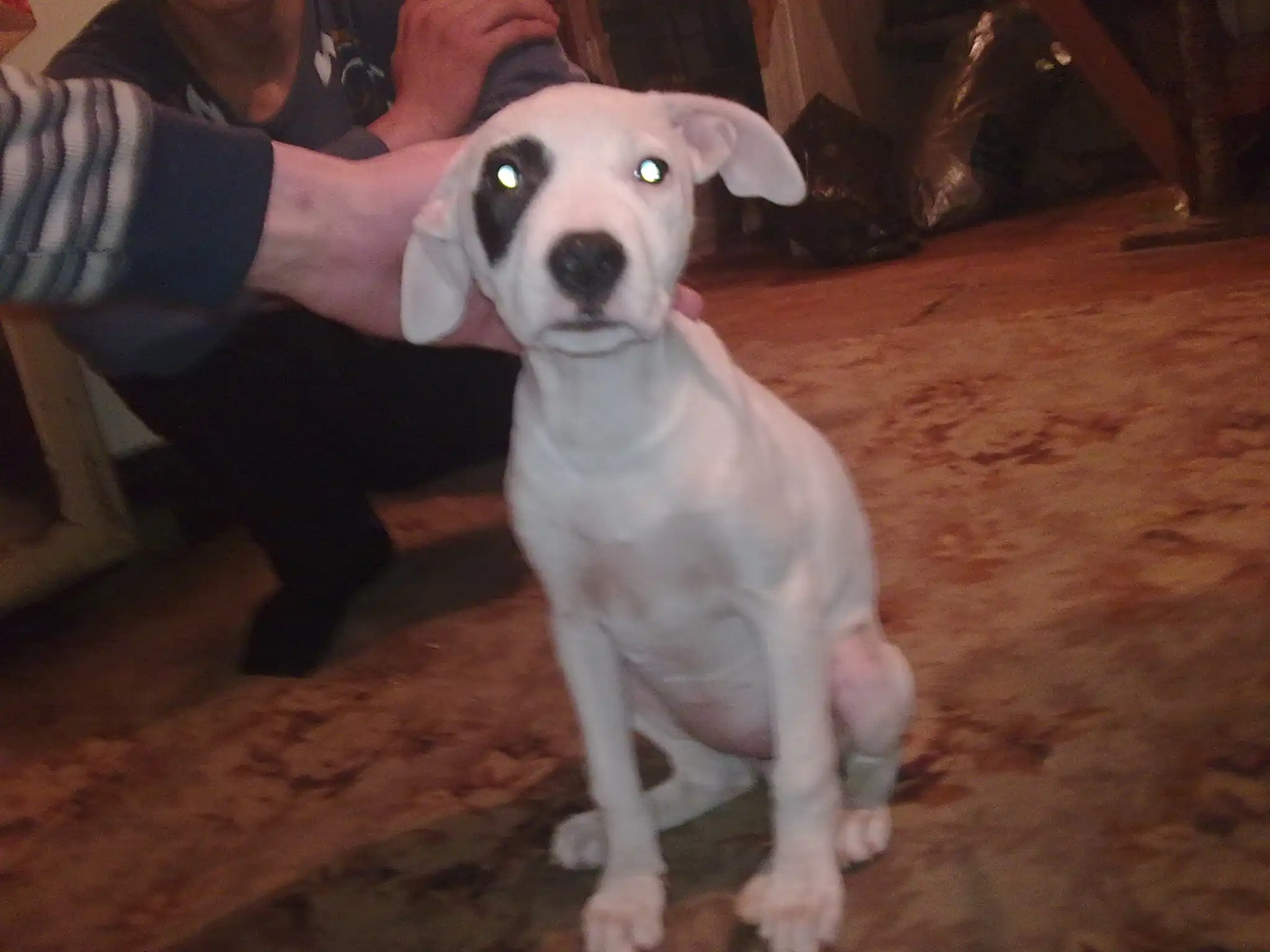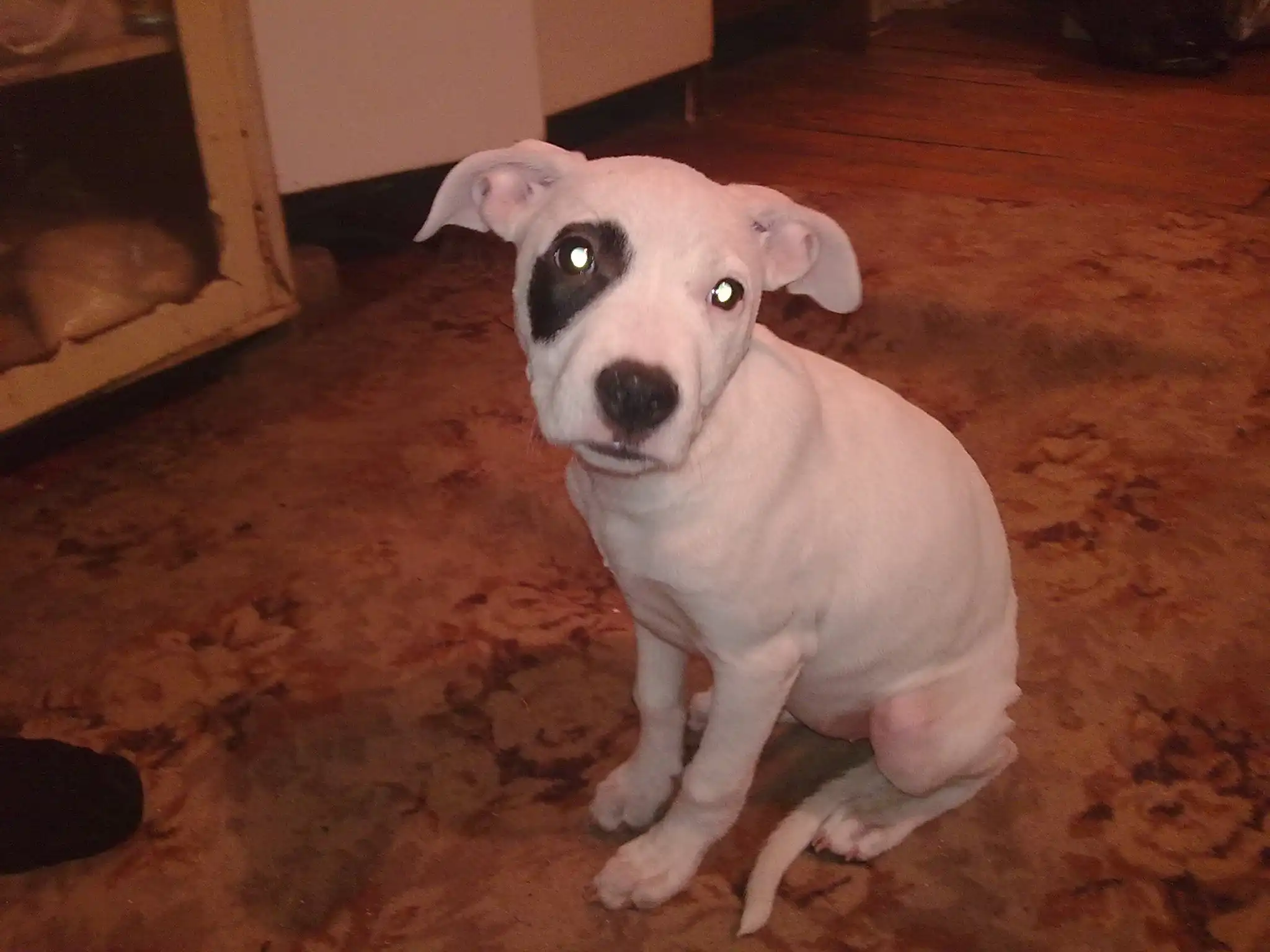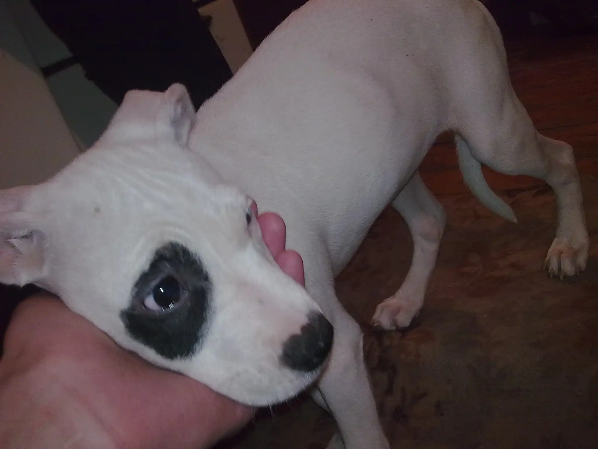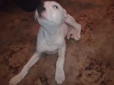 ПИТ-БУЛЬТЕРЬЕР (бойцовая порода), сучка 2 месяца, к туалету приучена, поставлена прививка от чумки, нужно купировать уши, и поставить 2 прививи.