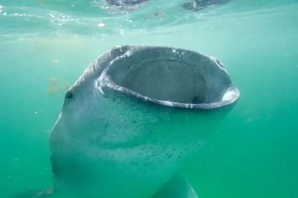 Несмотря на внушительные размеры, китовая акула для человека абсолютно безопасна, так как питается подобно гигантской акуле и акуле-большероту исключительно планктоном и прочими мелкими организмами, которых она фильтрует, втягивая в себя воду.