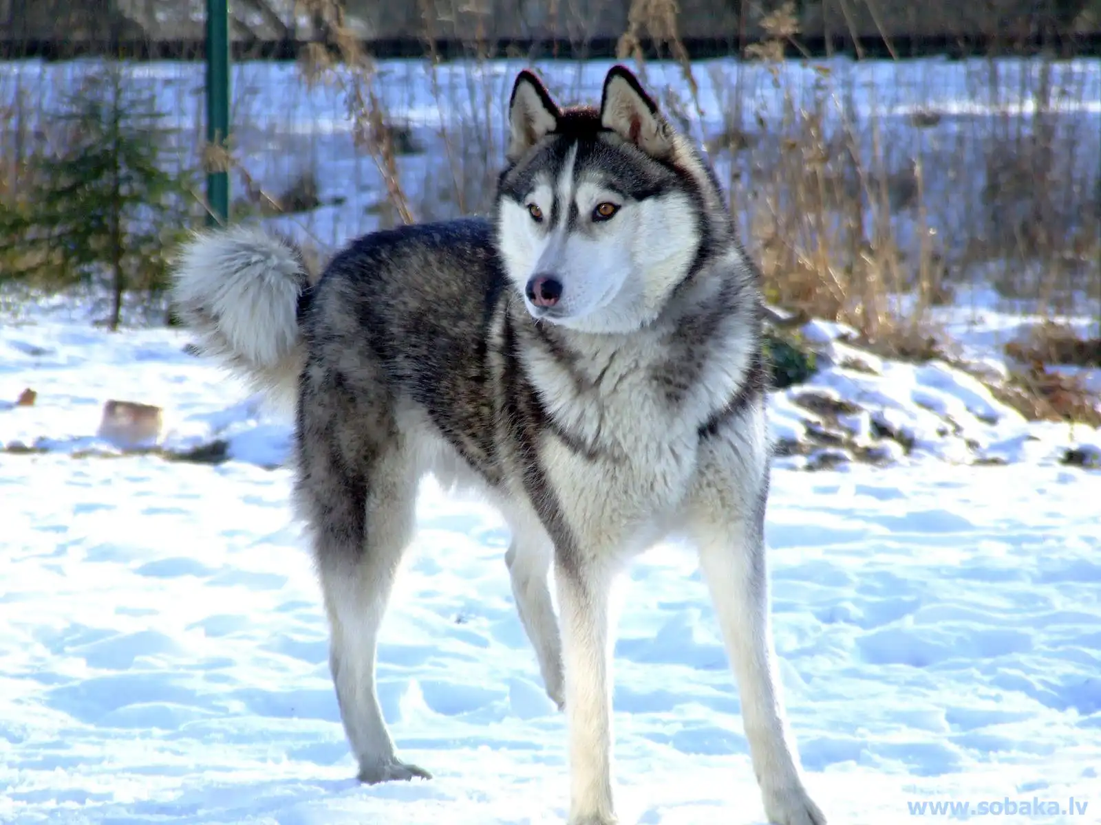Сибирский хаски – среднего размера рабочая собака. Его характерный аллюр ровный и кажется не требующим усилий. Он отлично выполняет свою изначальную функцию в упряжке, перевозя небольшой груз на средней скорости на большие расстояния.