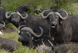 Буйволы могут показаться не столь уж опасными животными. Но это впечатление обманчиво. Почуяв опасность, буйвол бросается в атаку, а его 700 килограммовая туша, увенчанная двумя огромными (до 195 см) рогами может не просто покалечить. Она может разорвать вас на части. Если действие происходит в зарослях, то даже вооруженный человек не всегда успевает сделать выстрел. И не дай бог кому-то вызвать гнев не одного буйвола, а целого стада.