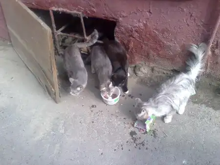 В районе Томска-I на Елизаровых в подвале живут 2 кошки и 2 котика. Они все исхудавшие, нужен срочно дом или передержка. 2 котика: серый кот, пушистый, с роскошным хвостом на вид 1,5 - 2 года. Очень дружелюбный и общительный, на мой взгляд, просто красавчик. Черненький с белой мордочкой, на вид месяцев восемь. 2 кошечки (насчет одной кошка это или кот не уверена). Обе серые, полосатые, возростом около 8 месяцев, одна предположительно беременная, но срок не большой, ей передержка нужна как можно быстрее, пока не поздно.