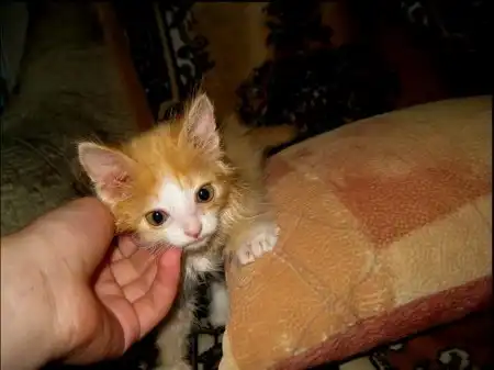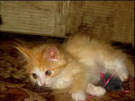 найден котенок сегодня. посреди дороги. В ужасном состоянии. уши забиты чем то были, шерсть - в колтунах. хвостик надломлен. Мальчик. 1, 5 мес.