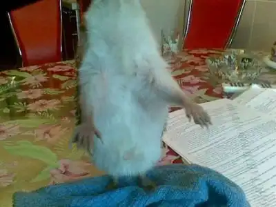 Малышка умудрилась побег из клетки учинить (перевернула свой домик, подоткнула с двух сторон подстилку, чтобы не скользить, подставила тарелки под ноги и перелезла.. кактусу до этого далеко..он в туалет в тарелку ходит наверное так вкуснее….