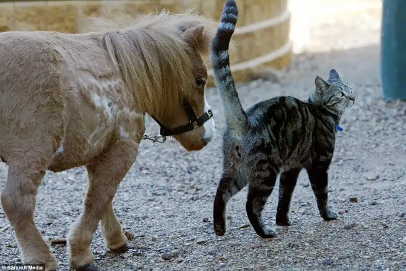 Это не просто карликовая лошадь. Это карлик среди карликовых лошадей. Koda такой маленький, что люди часто принимают его за игрушку на батарейках. Ветеринары удивлены, что в свои 13 месяцев этот конь еще жив и здоров, несмотря на кучу врожденных проблем со здоровьем. Он пережил несколько операций на ногах. Скоро будет проведена стоматологическая операция - его зубы слишком велики для такой челюсти. А гриву, которая растет в неправильном направлении, решили считать просто шармом малыша. Доктора говорят, что Koda очень мужественный, он принимает лекарства как маленький человек, все понимает. У него есть все шансы прожить долгую и счастливую жизнь. А пока он гуляет с котиком, который живет при ветеринарной лечебнице - всегда приятно пройтись с кем-то, кто равен тебе по росту.