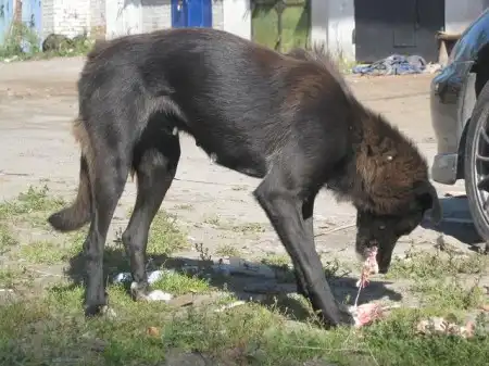 В горожах собака родила щенков. Там и живут. В лесу.Едят, что найдут.