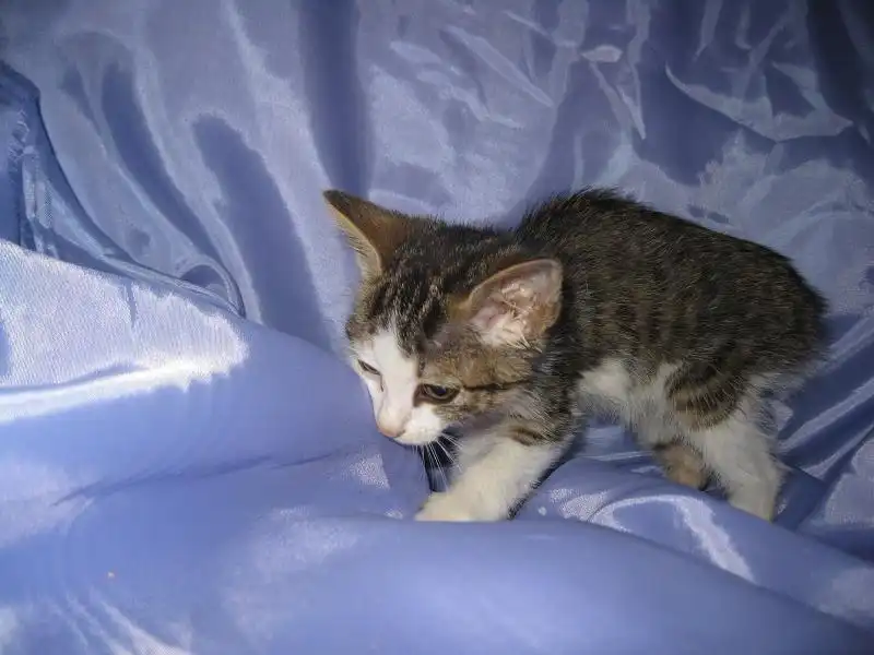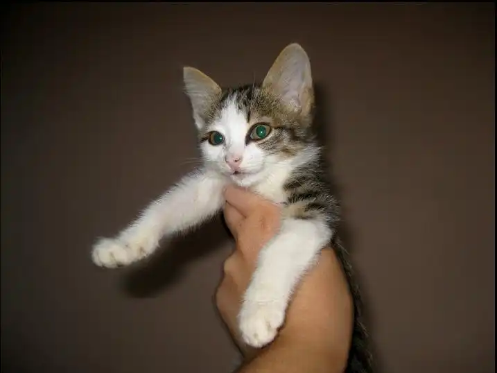 Росинке примерно полтора месяца, она веселая, озорная, и в то же время нежная и ласковая, прекрасно кушает, лоток знает. Ее красивые большие ушки и пятнышко на нижней губке делают ее образ оригинальным, а подведенные глазки - необычайно выразительным взгляд котенка. Она как будто постоянно просит о ласке. В целом же котенок вполне самостоятельный, со сформировавшимся характером.