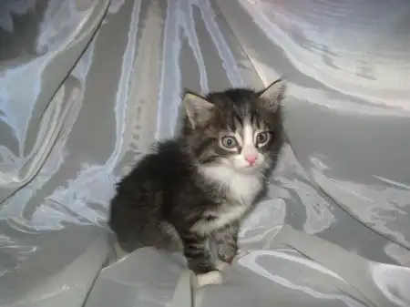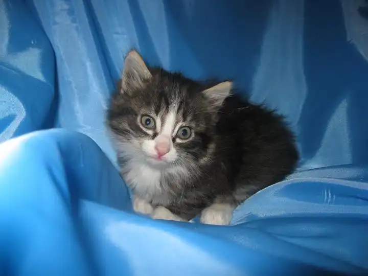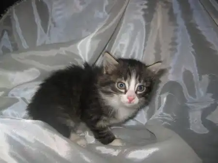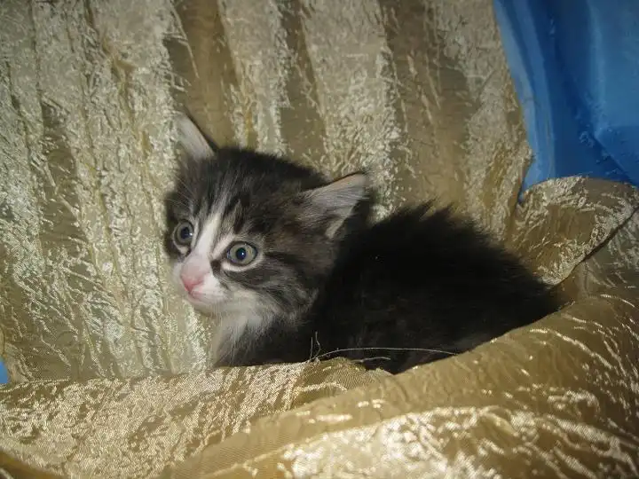 Этой чудесной малышке чуть больше 1 мес., она родилась у бездомной кошки под крыльцом парикмахерской, кошка так тщательно прятала, что маленькой достать не удалось. Просто удивительно, что котята, жившие в таких условиях, совершенно ручные, ласковые и упитанные.
