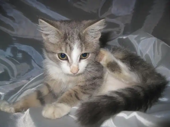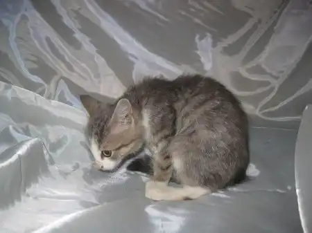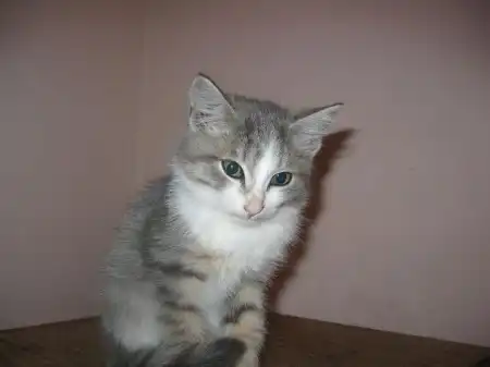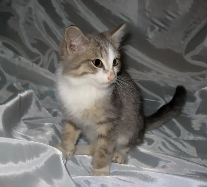 Жемчуг - котенок удивительного окраса, он весь переливается и искрится оттенками голубого, розового, серого и белого, как настоящая жемчужина. Котенок очень ласковый, любопытный, такой приятный, что его невозможно отпустить с рук. Отлично кушает, назначение лотка знает. Котенку примерно 2,5 мес. Найден в подвале на рынке.