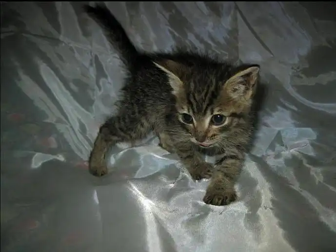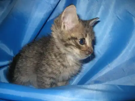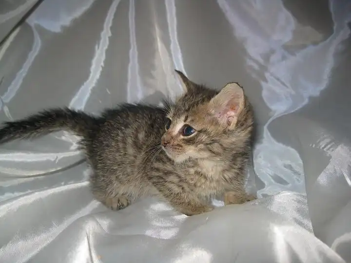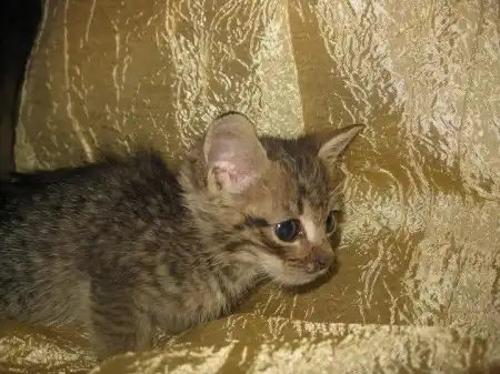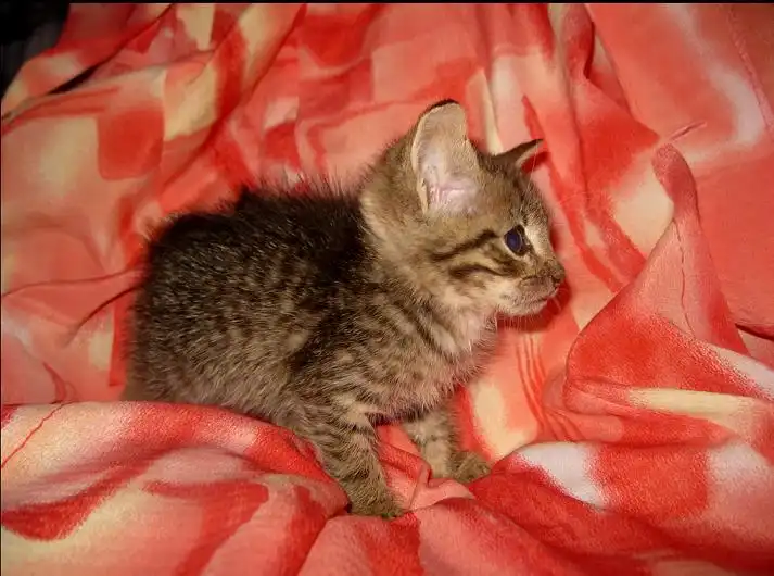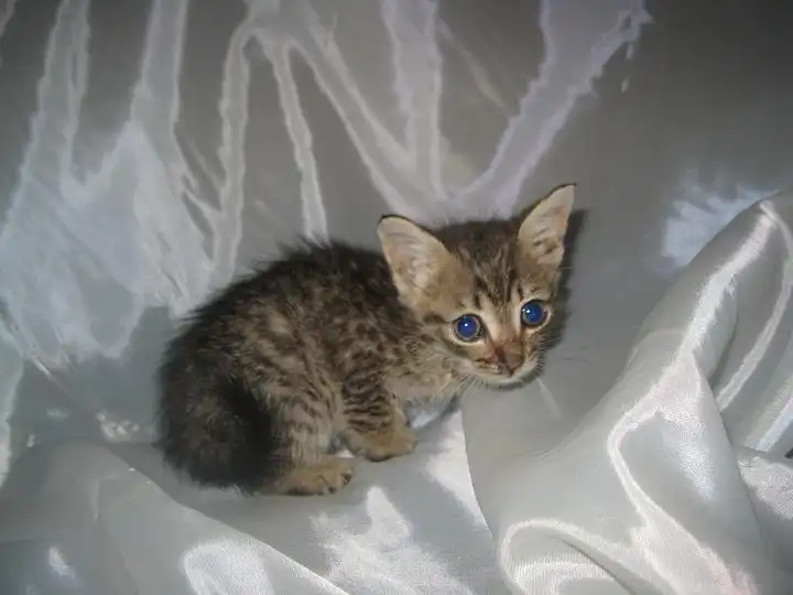Оскар - маленький котенок леопардового окраса с милыми кисточками на ушках и широко раскрытыми глазами. Ребенок спокойный, ласковый и добрый, хорошо ест самостоятельно, прекрасно пользуется лотком, хотя ему всего месяц. Оскар родился у бездомной кошки в подвале на рынке, его братья и сестры погибли, он выжил один. Обещает вырасти в прекрасного, эксклюзивного кота, который станет настоящей наградой для своих хозяев.