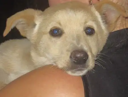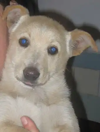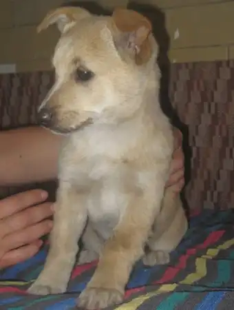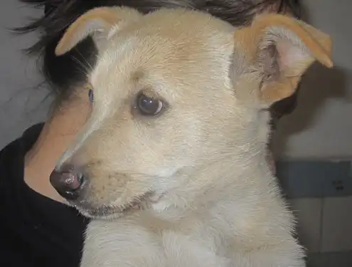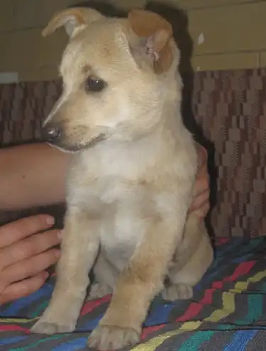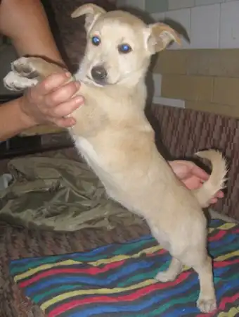 Щенок от маленькой собачки, девочка, возраст приблизительно 4 месяца, в холке будет около 25-30 см. Шерстка у неё нежная и блестящая, как шёлк! Лапки укорочены. Она тихая, спокойная, доброжелательная. Идеально подойдёт для проживания в квартире.