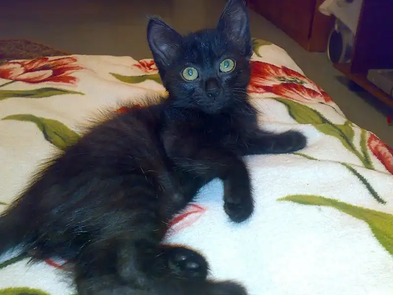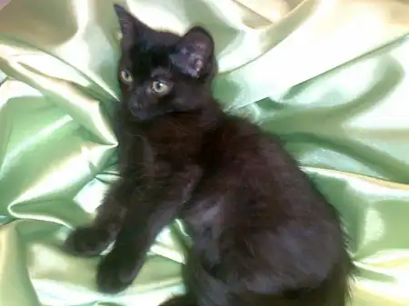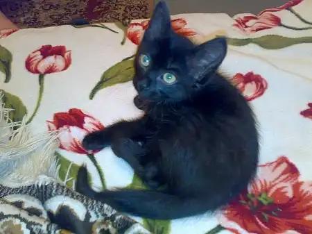 Милый котёнок, ищет доброго отзывчего хозяина. Возраст около 2 месяцев. Мальчик: окрас черный, к лотку приучен,непоседа, очень весёлый и игривый, любит играть в футбол т.е. катать мячик по полу,по утрам правда иногда приходиться искать тапочек после его развлечений с ним. Не дерется (ну если не брать в счет нашего семейного кота, дерутся в шутку),кушает все. Нашли в подьезде, кто-то подбросил.Причина отдачи, второй кот в семье.