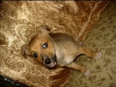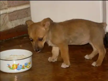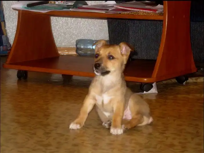 У Сони укороченные лапки, и непропорционально большая голова, что характерно собачкам комнатных размеров. Вырастет не более 35 см. в холке. В ближайшие дни пройдет осмотр ветеринара. ест сухой корм.
