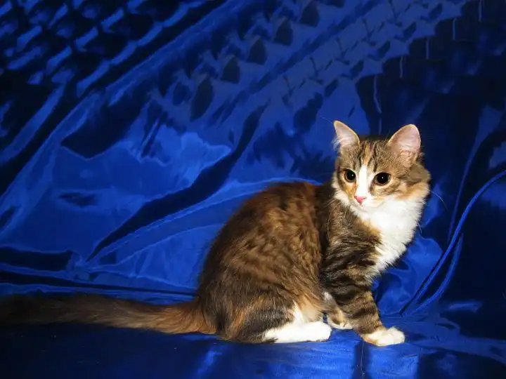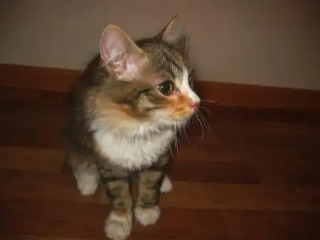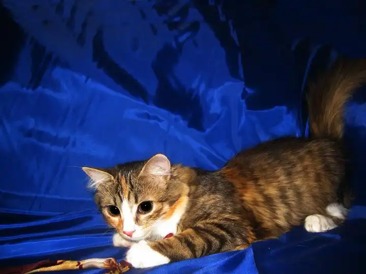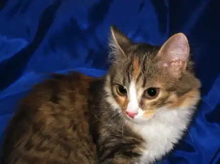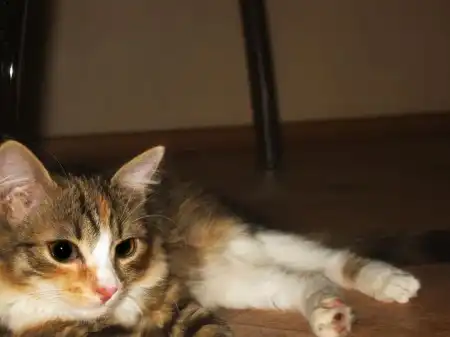 киска Мася, почти четырех месяцев от роду. От нее отказались хозяева по причине аллергии (где-то я это уже слышала). Кисон слегка пушистая, худенькая, с потрясающе красивыми глазами. Таких большущих миндалевидных глаз я до сих пор не видала у домусов.Если бы я описывала ее как женщину, сказала бы: тонкие черты лица и выразительные большие глаза.Несмотря на свою утонченную внешность, обладает характером уличного хулиганистого пацана. Шустрая, быстрая задира, за едой рычит на всех и лапами машет, на руках хочет -сидит и мурчит на весь дом, не хочет-фиг уговоришь.Она для тех, кому прискучило засыпать в тишине и просыпаться под будильник.С ней и засыпаешь и встаешь под топот и грохот, писк и мявк. Лоток знает, но чистюля и привереда, в грязный не пойдет. Ест много чего, но предпочитает натуралку (ливер, курочку) Ищем ласковых, терпеливых и психически устойчивых хозяев без аллергии и др. вредных привычек.