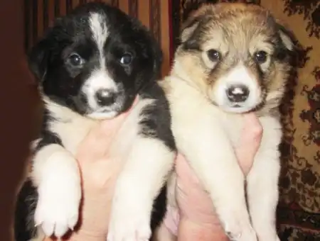 Оба щенка - мальчики! Светлый пятнистый щеночек более озорной, очень любит играть! Чёрненький с белым щенок - обжорка, более спокойный и серьёзный. Вырастут около 45 см в холке.